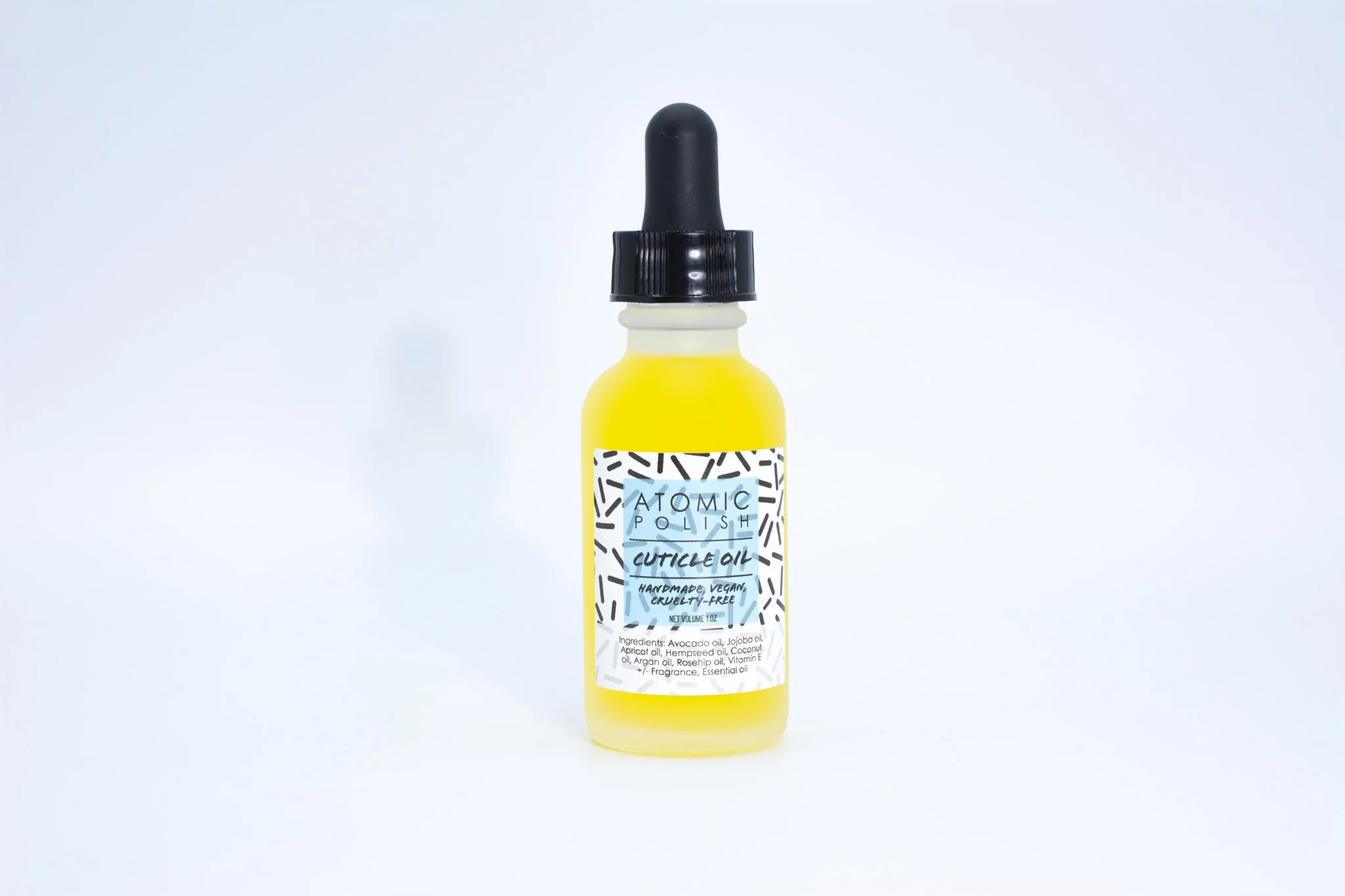 Ingredients: Avocado oil, jojoba oil, apricot oil, hempseed oil, coconut oil, argan oil, rosehip oil, vitamin E oil +/- essential oils, fragrance oil